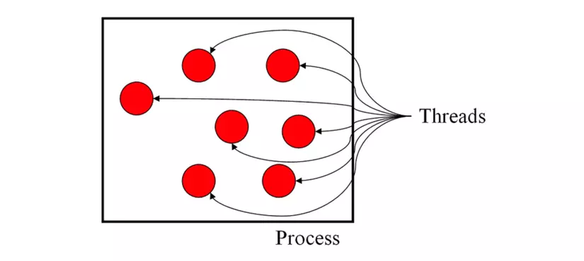 - Một process có thể chứa nhiều thread bên trong nó. Khi chúng ta chạy ứng dụng, hệ điều hành tạo ra một process và bắt đầu chạy các thread chính của process đó.